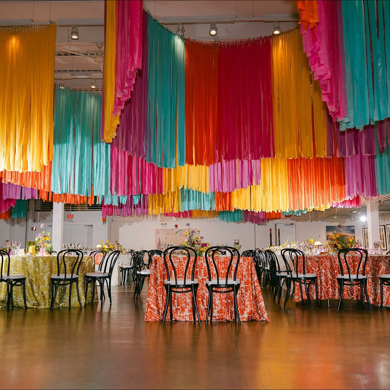 Take your event to the next level with our custom ceiling installs. From soft, flowing fabric canopies to structured designs that highlight lighting and architecture, our ceiling treatments create a stunning focal point and add a sense of intimacy and luxury to any space.